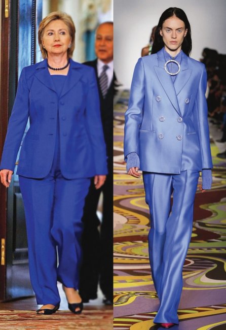 Когда Клинтон начала борьбу за президентское кресло, за ее стиль взялась лично Анна Винтур. Итак, оценим проделанную работу. Сейчас Хиллари, как правило, появляется на публике в однотонных брючных костюмах прямого силуэта из тканей, которые хорошо держат форму. Цвета — пронзительно-яркие. И кстати, она один из немногих политиков, использующих цветовые контрасты.