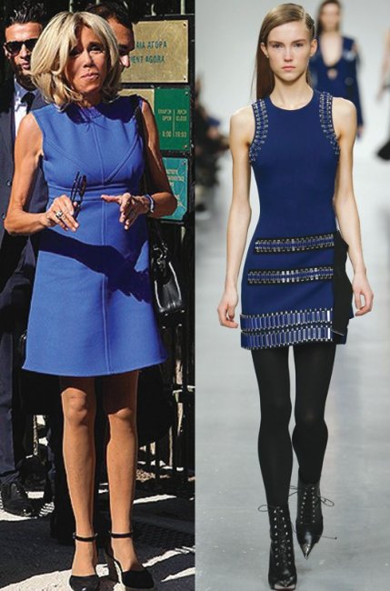 У первой леди Франции есть свой стиль — возможно, неоднозначный, зато всеми узнаваемый. Легко заметить, что Брижит всегда носит один фасон платьев, льстящий ее стройной фигуре, — футляр с коротким рукавом, длиной чуть выше колена. Зато цветовая палитра разнообразна — белая, голубая, синяя, коралловая. Также она любит пиджаки — как правило, укороченные жакеты с массивными пуговицами.