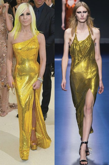 Донателла является живым воплощением фирменного стиля Дома Versace, вызывающе роскошного и агрессивно-сексуального. Несмотря на возраст, она по-прежнему появляется на публике в чем-то обтягивающем и декольтированном. Ее принципы: носить черный только днем, а вечером переодеваться в яркое и блестящее; и еще — украшений у женщины должно быть значительно больше, чем одежды.