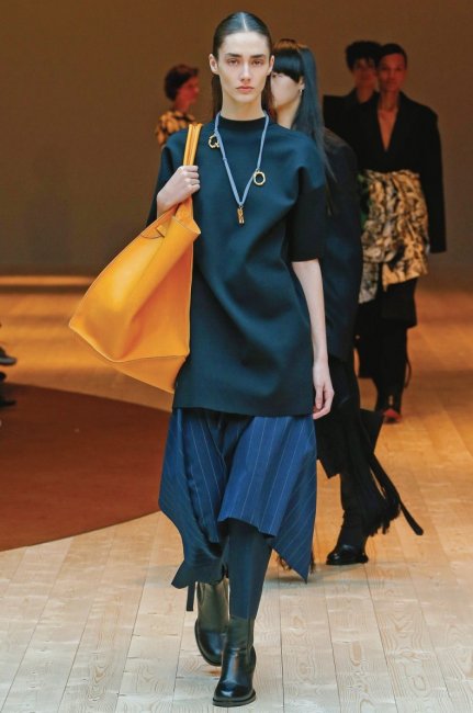 Мода на силуэт oversize, кажется, захватила подиумы всерьез и надолго. В этом сезоне тренд дал о себе знать в деловых костюмах: и с юбками, и с брюками рекомендуется носить жакет с широкими плечами. Знатоки моды тут же увидели в этих моделях отсыл к знаменитым power suit, популярным среди амбициозных женщин девяностых — да, стиль того десятилетия по-прежнему в моде.