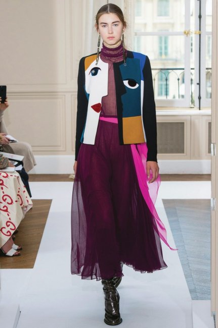 Дизайнер Бертран Гийон в новом сезоне искал вдохновение в архивах модного Дома Schiaparelli, благо сама Эльза Скиапарелли в свое время дружила с выдающимися мастерами культуры, от Жана Кокто до Пабло Пикассо. Фрагменты картин последнего вы без труда узнаете на платьях и жакетах этой кутюрной коллекции. И дело не в простом цитировании классика кубизма, дизайнер стремился передать дух свободы и независимости, свойственный всем творцам, обитавшим когда-либо в Париже.
