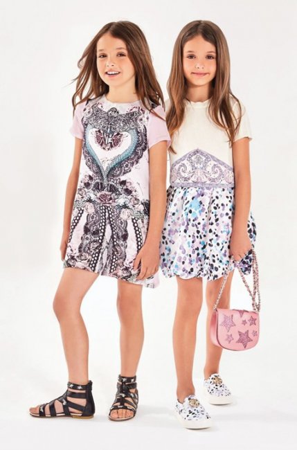 Какой нормкор? Какой минимализм? Дизайнер Дома Roberto Cavalli Питер Дундас гордо игнорирует тренды уличной моды, делая ставку на эстетику хиппи семидесятых, смело мешая ее с восточной экзотикой и цыганским бохо. Что же касается коллекции для девочек, то в ней «богемная» тема смотрится по-детски ярко и игриво, а главное — без тени вульгарности.