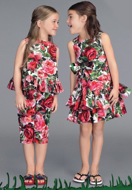 Знаменитый модный дуэт в этом сезоне затеял игру в дочки-матери, выпустив коллекцию Mini me, в которой представлены практически идентичные наряды для мам и дочек — те же принты, те же фасоны, разве что размеры разные. А что касается стиля коллекции, то Стефано и Доменико не стали изменять себе и, как обычно, предложили на лето жизнерадостные рисунки и яркие цвета.