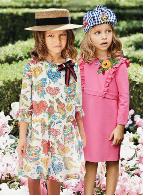 Представляя взрослую круизную коллекцию Gucci, дизайнер Алессандро Микеле признался, что его вдохновляла богатая культура Англии — от викторианских костюмов до панковских прикидов. Неожиданные микс, не так ли? А на деле на подиуме оказались уже привычные квазивинтажные фасоны, богато декорированные вышивкой и растительными принтами. В детской линии Дома нарядный стиль дизайнера тоже прослеживается, но в более мягкой, нежной манере.