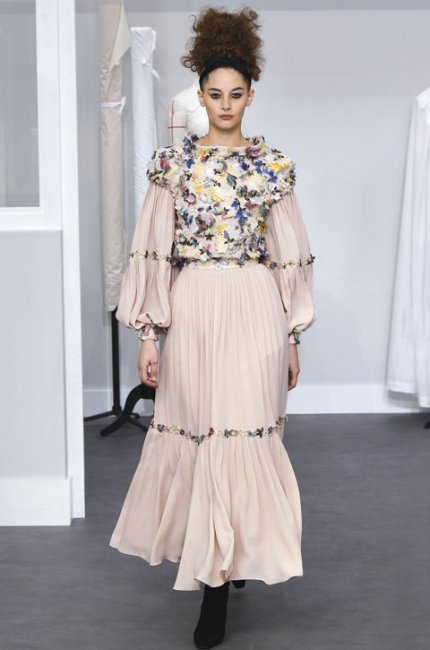 Карл Лагерфельд представил очень сдержанную по цветовой гамме коллекцию, выстроенную по консервативной схеме «день-вечер-особый случай». Королем показа стал твид, элегантно расшитый или украшенный цветочными аппликациями. Почти все комплекты дополняли черная лента с бантиком на голове, черные сапоги-чулки и черные же высокие митенки. В общем, очередное напоминание, что в Париже встречают все еще по одежке.