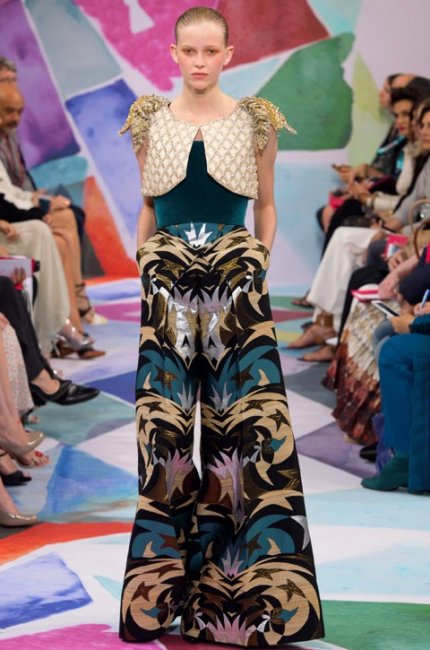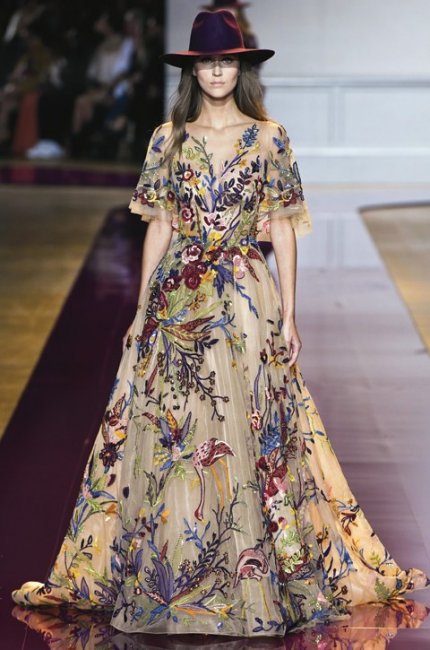 Создавая кутюрную коллекцию, Эли Сааб вдохновлялся Нью-Йорком. Ливанский дизайнер смог объединить западный мегаполис с типичной для Востока тягой к роскошной избыточности. Подчеркнуто женственные силуэты отсылают к середине прошлого века, а сюжетную нагрузку принял на себя декор, в рисунках которого угадывались орнаменталистика ар-деко и пышные восточные сады.