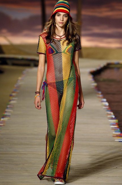 Полупрозрачные наряды в тренде с прошлого лета, но если год назад предпочтение отдавали кружеву, то нынче явный фаворит — сетка. Видимо, сказывается мода на девяностые. Платья и топы из сетки продемонстрировали ведущие Дома моды. Прекрасный вариант для пляжа, а в сочетании с вечерними аксессуарами — и «на выход».