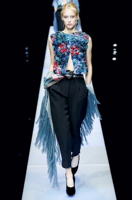Я всегда ценила Армани за элегантную простоту силуэтов, а в этом сезоне меня порадовала и выбранная им палитра: ведь холодные тона так идут блондинкам! И отдельное спасибо маэстро за принты, которые были вдохновлены полотнами Марка Шагала, одного из моих самых любимых художников.
