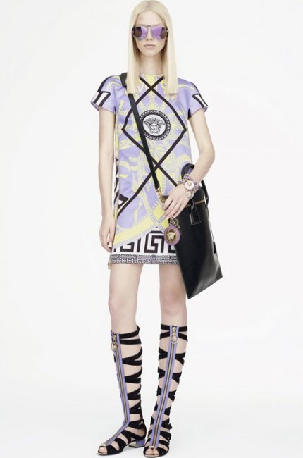 Создавая resort collections для нынешнего лета, Донателла Версаче обратилась за вдохновением к эпохе шестидесятых, а также к богатейшим архивам своего модного Дома. Результат налицо: платья простых геометрических форм богато украшены «античными» принтами и фирменными медузами, без которых вот уже третье десятилетие невозможно представить ни одну коллекцию Versace.
