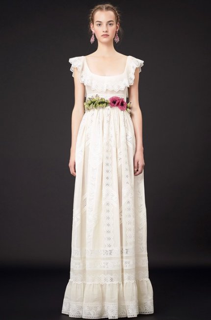 Дизайнеры Мария Грация Кьюри и Пьер Паоло Пиччоли, создавая эту коллекцию, думали о легендарной мексиканской художнице Фриде Кало, отсюда и яркие краски, и огромные цветы на подолах и украшениях. Правда, эксперты усмотрели еще один культурный отсыл: летнее творение дизайнеров поразительно напоминает коллекцию Valentino 1973 года — что ж, богатые архивы Дома располагают к подобным заимствованиям.
