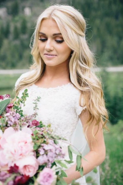 В таком образе каждая девушка будет выглядеть очень женственно, нежно и в то же время романтично. При выборе такой прически важно учитывать погодные условия: в дождливую и ветреную погоду на улице завитые локоны не смогут долго продержаться, даже если для укладки были использованы специальные косметические средства. А в сильную жару с распущенными волосами невесте будет очень жарко и некомфортно.