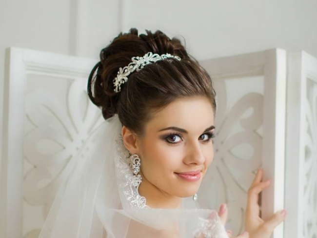 Свадебные прически на длинные волосы: с фатой и без, с челкой, с диадемой (фото) - «Модные тенденции»