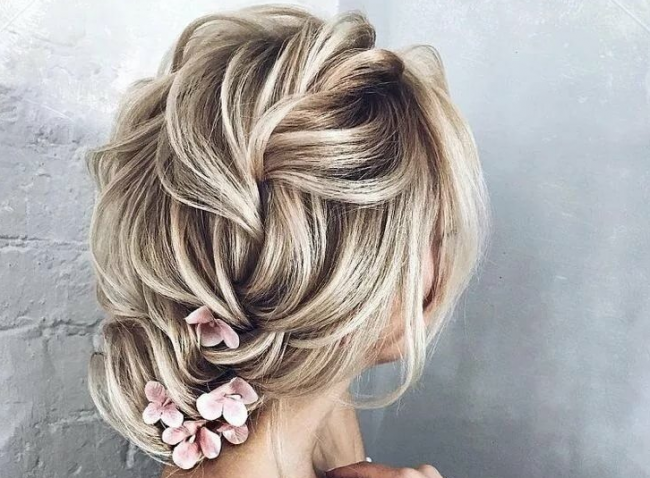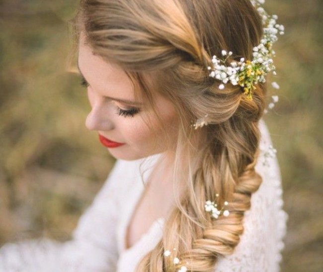 Свадебные укладки с использованием живых цветов пользуются большой популярностью. Но, подбирая такой вариант, необходимо заранее найти профессионального флориста, который порекомендует, какие именно живые цветы лучше всего подойдут.