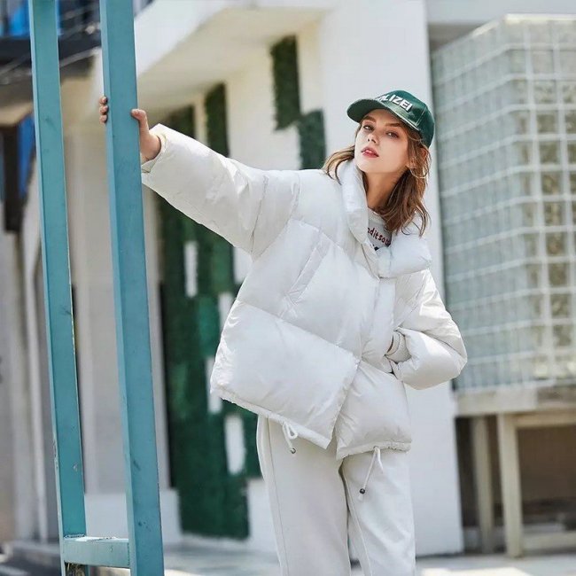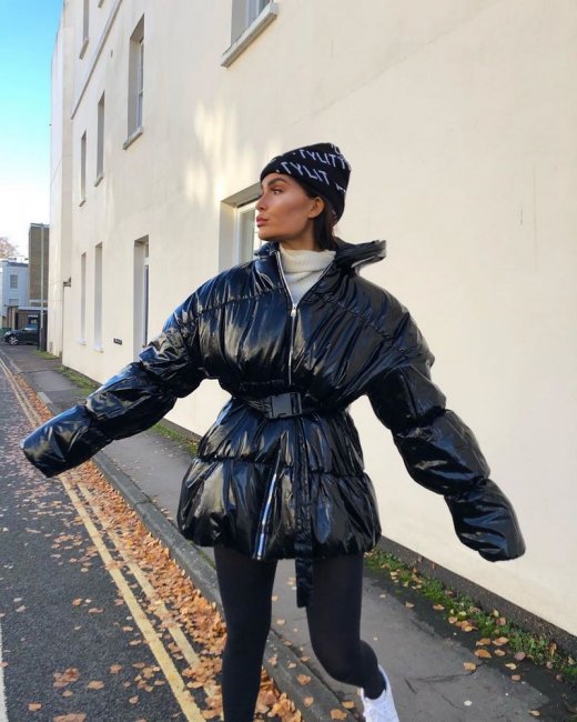 Длина курток оверсайз может быть разной. Сезон 2021-2022 гг. включает модели бочонки. Это короткие пуховики с затягивающимися резинками на рукавах и по низу куртки. Такие детали позволяют придать пуховику форму бочонка.