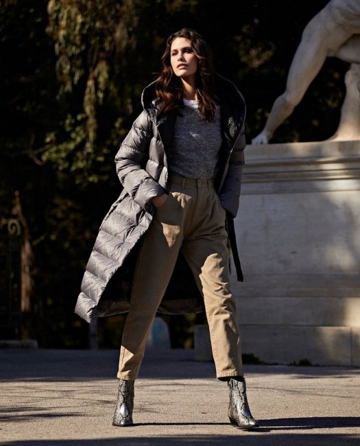 Длина изделия зависит от того, где девушка собирается зимовать. В европейских странах сильных морозов не бывает, поэтому женщины могут выбрать укороченный пуховик. Куртка по пояс отлично будет смотреться с высокими джинсами и ботинками челси на толстой подошве. Короткие пуховики также подойдут для зимовки в южной части России.