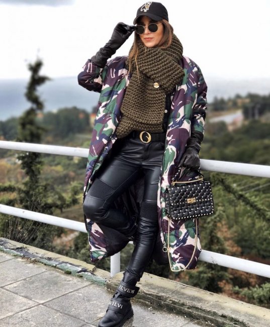 Принты придают одежде нестандартный вид. Можно самостоятельно украсить свой пуховик, чтобы он был в единственном экземпляре и подчеркивал индивидуальность. Такие вещи обычно носят со спортивной обувью и аксессуарами. Однако известные модницы сочетают кастомные пуховые пальто с сапогами на каблуке.