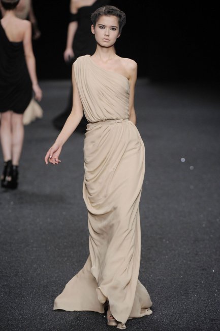 Стильным декором для вечерних платьев считается драпировка, она прекрасно сочетается с разной длиной. Наряды могут иметь разные особенности – асимметрию, пышные рукава, открытые декольте.