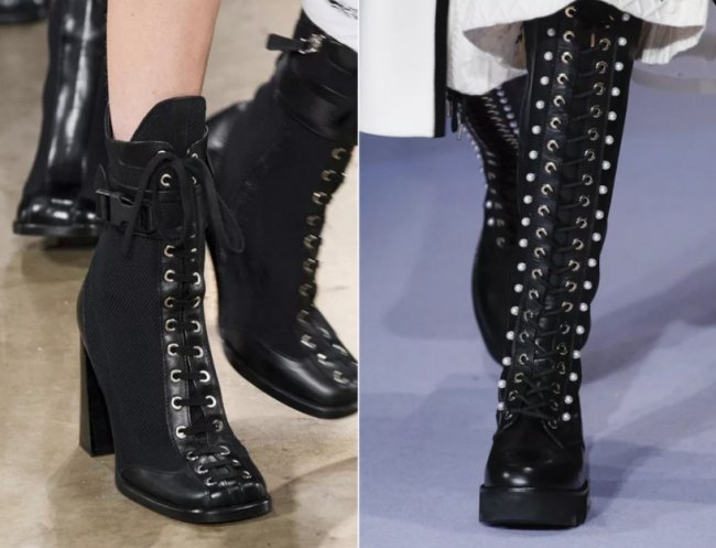 Массивная прорезиненная платформа используется для пошива грубых ботинок. Такая обувь бросается в глаза. Носить грубые ботинки можно в любом стиле, если грамотно сочетать с другими деталями гардероба. Модницы выбирают классические лоферы или ботинки на шнуровке.