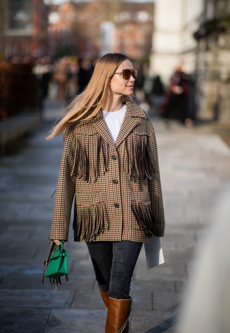 Деталями модных женских луков на каждый день сезона осень-зима 2022 года становятся бахрома на аксессуарах, зауженные джинсы, полупрозрачные шарфы. Меховые унты и дутый короткий пуховик завершат зимний образ.