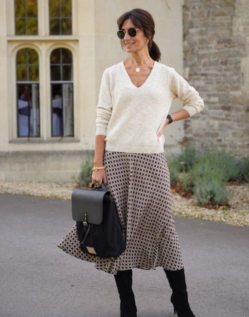 Юбка. Женщинам 40 лет стоит присмотреться к юбкам длины миди. Это отличный вариант для тех, кто хочет подчеркнуть природную красоту фигуры.