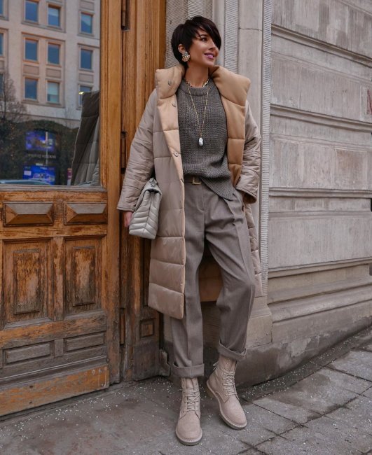 Вещи для зимних образов на каждый день лучше всего выбирать в нейтральных пастельных тонах.