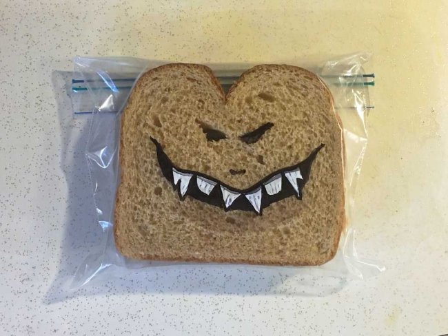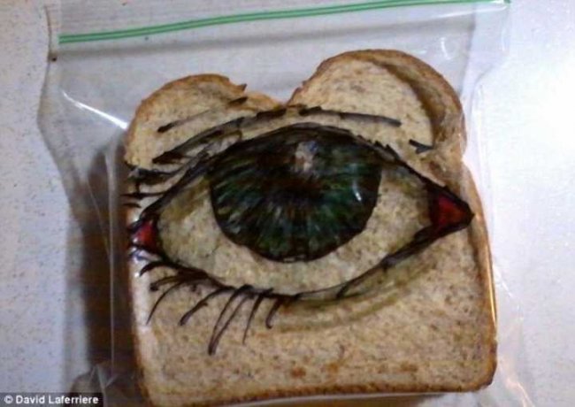 Дэвид Laferriere работает графическим дизайнером. Свои навыки рисования он использовал, чтобы развеселить своих детей. Каждое утро он не только сам делал бутерброды для своих чад в школу на обед, но и с помощью маркеров рисовал на пакетах, в которые заворачивал детский обед, чтобы их как то развеселить. И каждый день рисунок был разный. За 5 лет пока его дети ходят в школу он нарисовал более 1000 рисунков, темы которых варьируются от динозавров и монстров до золотых рыбок и уток. Идеи приходят очень быстро, он их быстро набрасывает на целлофановых пакетах, кладет в сумку пока дети собираются и только в школе они видят что же сегодня нарисовал им отец. Таких обедов нет ни у кого в мире, несмотря на то, что даже если Ваш отец художник ни кому больше в мире не пришла такая идея развеселить своих чад с помощью авторских пакетов.