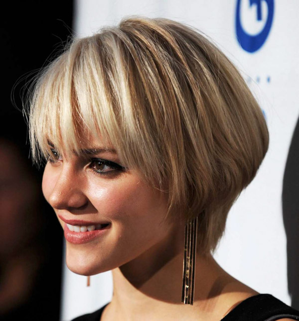 Если вы предпочитаете короткие стрижки, то остановите свое внимание на таких как «боб», «паж», «каре»: эти стрижки позволяют скрыть выступающие скулы. Отличным выбором будет «каре на ножке». Челка не должна быть прямой: ее надо или убрать совсем и сделать волосы одной длины («паж», классическое «каре»). Можно сделать косую стрижку: это зрительно удлинит лицо. Если же вы, несмотря ни на что, предпочитаете прямую челку, то следует по максимуму отфилировать ее ножницами, чтобы сделать ее редкой, но остальная часть прически должна обязательно быть объемной.