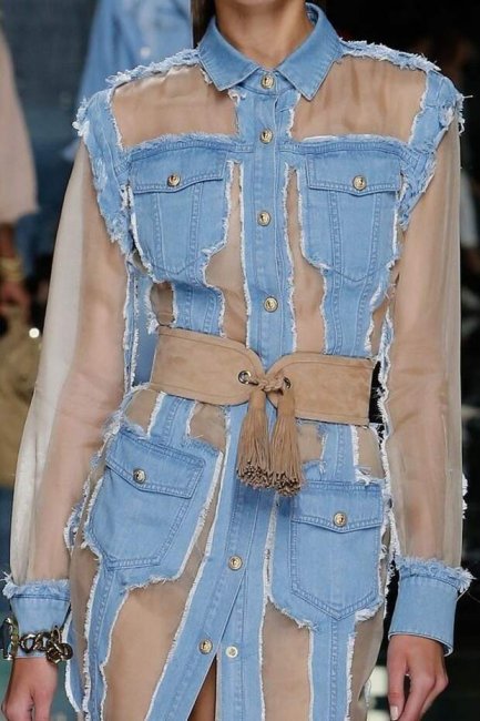 В этом году большинство домов высокой моды представили в своих коллекциях и комбинированные платья из денима. В тренде в 2023 г. модели, сшитые из джинсовой ткани, в сочетании: