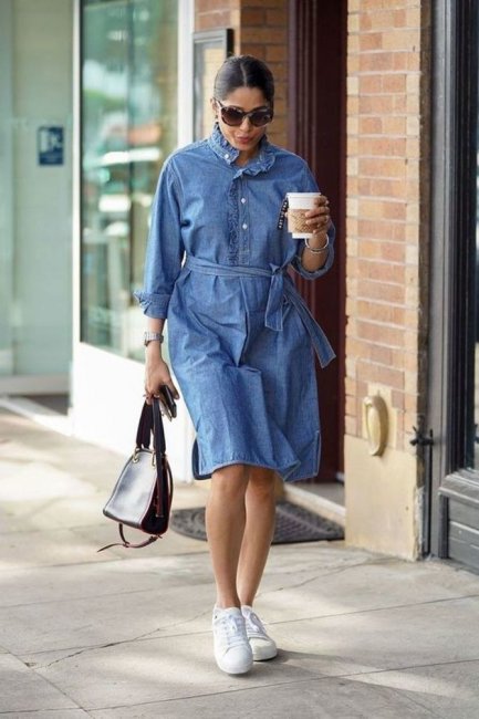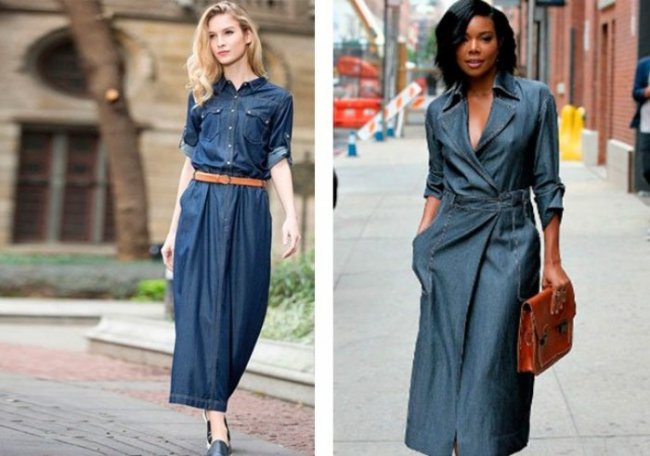 Джинсовые платья такого силуэта остаются в тренде вот уже несколько лет. Платье-рубашка из денима будет отлично смотреться практически на любой фигуре. Такая одежда может иметь разный крой. Для молоденькой худенькой девушки отлично подойдет платье-мини классического фасона. Мешковатая модель oversize скроет лишний вес. Женщине с массивными бедрами стоит выбрать трапециевидное платье, расклешенное внизу.