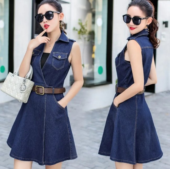 Считается, что джинсовые платья с V-образным вырезом отлично подходят как для стройных и высоких девушек, так и для пышнотелых дам.