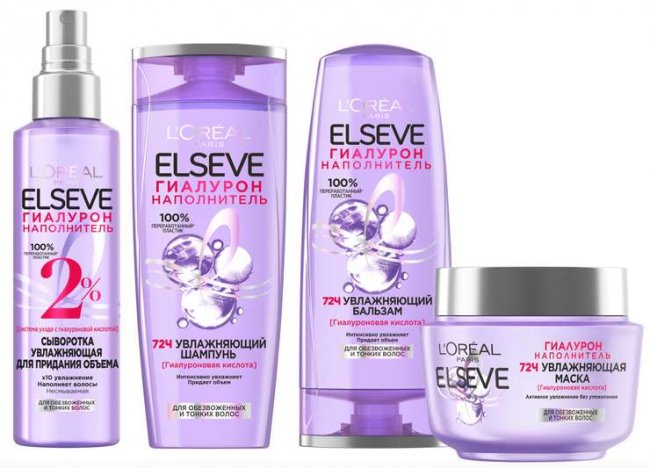 - Бальзам «Elseve Гиалурон Наполнитель» — нанесенный после использования шампуня из одноименной гаммы, увлажняет волосы по всей длине, обволакивая их и выравнивая поверхность. Предотвращает спутывание, обеспечивает легкое расчесывание, гарантируя объем и стойкость укладки.