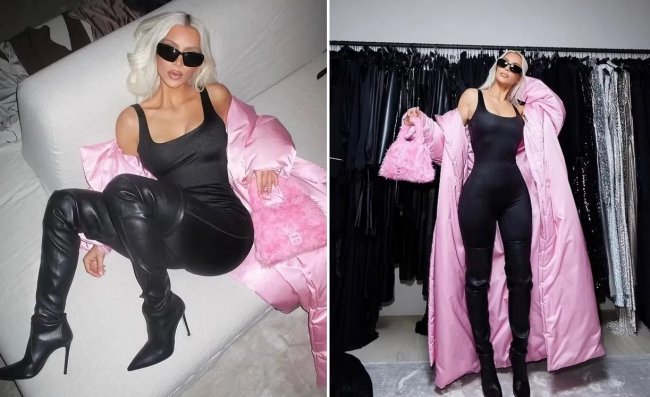 В этом сезоне Ким продемонстрировала новый тренд – совмещение Х-силуэта с верхней одеждой оверсайз. На зиму Кардашьян выбрала длинный пуховик светло-розового цвета. Этой зимой в тренде все оттенки розового и лавандового. Преимущество пуховика-одеяла не только в том, что он закрывает ноги и согревает даже в самые суровые холода. Такая модель визуально добавляет несколько сантиметров роста.