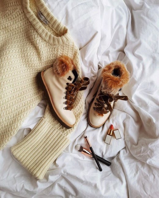 - Любительницы смелых экспериментов смогут подобрать фасоны, в которых мех полностью покрывает верхнюю часть изделий. Подобные ботинки предпочтительны для сухой погоды, поскольку не рассчитаны на слякоть.