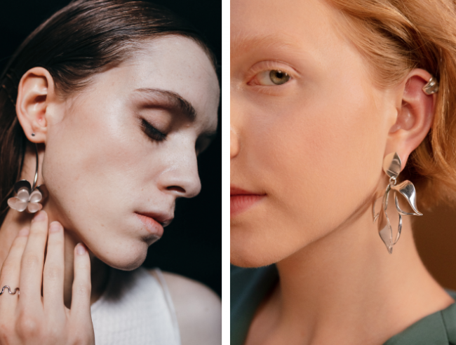 - Актуальной тенденцией является асимметрия. Это могут быть аксессуары, отличающиеся по размеру. Другой вариант – моно-серёжка, которая продевается только в одно ухо.