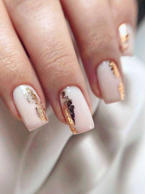 Маникюр с фольгойФото: СоцсетиЭтот материал отлично смотрится и на нежном, и на ярком оттенке. Он создает на ногтях уникальный узор, который отлично перекликается с заветным кольцом на безымянном пальце.