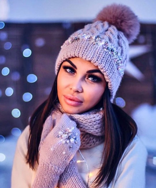 Изюминку в образ привнесут шапочки с меховым помпоном. Альтернативный вариант – элемент, выполненный из шерстяных нитей. Помпон может полностью совпадать по цвету с изделием или составлять с ним эффектный контраст.