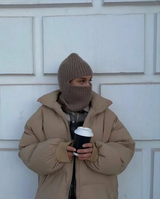 Любительницы нестандартных решений смогут обратиться к оригинальной тенденции и подобрать шапку-балаклаву. Преимущество головного убора заключается в том, что он максимально защитит от холода. Это обусловлено необычным фасоном, прикрывающим нижнюю часть лица. Видимыми для обозрения остаются только глаза и брови. Стилисты рекомендуют подбирать балаклаву, оснащённую змейкой-молнией. При необходимости деталь можно расстегнуть и оставить лицо открытым.