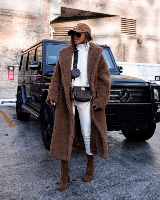 - При подборе верхней зимней одежды стоит обратить внимание на актуальный тренд в виде шубы из искусственного меха. Модели выполняются из ворса, имеющего прямую или вьющуюся структуру. При подборе расцветок предпочтение отдаётся естественным природным тонам. Базовой станет шуба, имеющая простой лаконичный покрой, дополненная английским воротником, которая гармонично сочетается с другими предметами гардероба.
