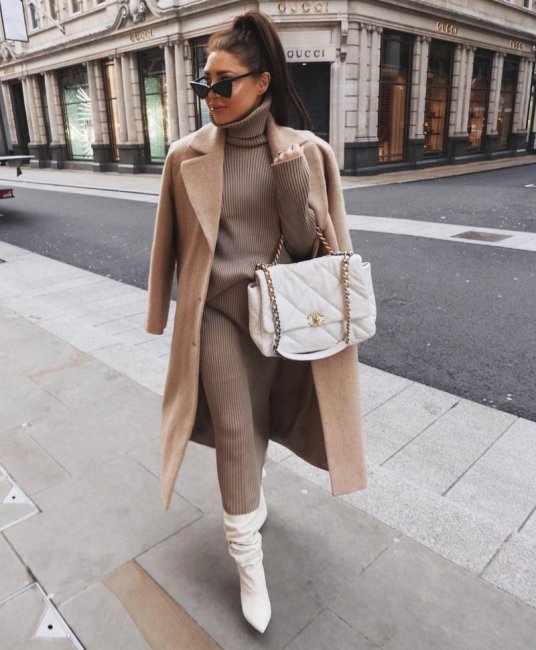 - При подборе верхней одежды для зимнего сезона беспроигрышным вариантом станет теплое пальто, выполненное в однотонной расцветке, характеризующееся простым лаконичным кроем. Рекомендуется отдавать предпочтение моделям длины миди или макси, под которые можно надеть всевозможные юбки и платья, брюки и джинсы. Под такое пальто подойдёт обувь на устойчивом каблуке, высокой танкетке или массивной тракторной подошве.