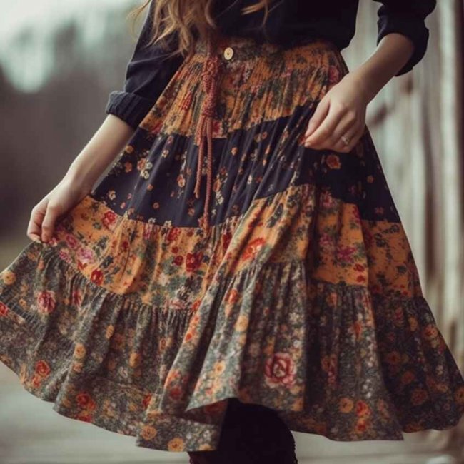 Комбинированные модные юбки помогут привлечь внимание к обладательнице такой вещи. При создании моделей прибегают к сочетанию тканей, отличающихся по структуре, дополнению разноцветными вставками. Любительницы стиля бохо оценят вещи, выполненные в технике пэчворк, состоящие из отдельных контрастных лоскутов ткани.