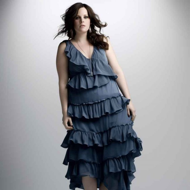 Любительницы романтичных образов смогут оставаться верными выбранному стилю. В этом поможет платье, дополненное многослойными рюшами. Избежать эффекта лишнего объема удастся с помощью узких деталей, расположенных одна над другой. Рекомендуется отдать предпочтение А-силуэту, отвлекающему внимание от выступающего живота. Визуальную стройность придадут темные расцветки.
