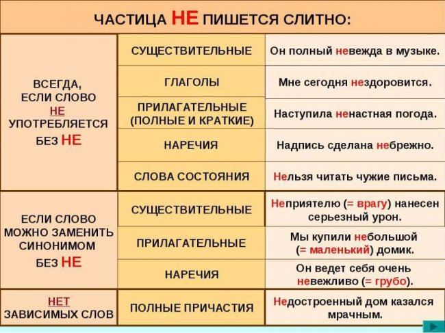 Kak_pravilno_pisetsa_slovo_nepravilno_ili_ne_pravilno] 1. Как правильно пишется слово: «неправильно» или «не правильно»? V_kakih_slucaah_nepravilno_pisetsa_slitno] 2. В каких случаях «неправильно» пишется слитно? V_kakih_slucaah_ne_pravilno_pisetsa_razdelno] 3. В каких случаях «не правильно» пишется раздельно? Kak_pisat_nepravilnyj_ili_ne_pravilnyj_slitno_ili_razdelno] 4. Как писать: «неправильный» или «не правильный», слитно или раздельно? Video_kak_pravilno_pisat_casticu_ne_s_nareciami] 5. Видео: как правильно писать частицу «не» с наречиями? С наречиями можно использовать как слитно, так и раздельно. В написании слова встречаются оба варианта написания наречия. Чтобы понять, является ли “не” частью слова или отрицательной частицей, вам помогут дальнейшие разъяснения. Кроме того, это не так уж и сложно. Просто вспомните правила грамматики русского языка. Это решение примера неправильно Таня написала текст неправильно В данной ситуации Никита повел себя неправильно Во всех предложениях — неправильно является синонимом — ошибочно. Как правильно пишется слово: «неправильно» или «не правильно»? Это наречие пишется так же, как и соответствующее прилагательное: Неправильная — неправильный — неправильно. В большинстве случаев встречается именно эта словоформа. Причем, не зависит такое написание, практически не от каких правил. Лишь в одном случае частичка — Не употребляется в виде словосочетания — не правильно. В каких случаях «неправильно» пишется слитно? Уже говорилось, что почти в 99,9% слово употребляется в текстах слитно. Так как наречие подходит под правило: Частичка — Не употребляется слитно, когда наречие или же прилагательное можно заменить на слово-синоним без этой частицы. Примеры: неправильно — ошибочно негромко — тихо нехорошо — плохо Вот, как это звучит в предложениях: Ты все неправильно делаешь! Вы неправильно заполнили анкету Неправильно нарисовал чертеж Раздельно следует употреблять — не, в следующих предложениях: Вы сделали расчет не совсем не правильно, а с двумя ошибками У вас результат получился не правильно, а с ошибкой на две единицы. ВАЖНО: Исключения составляют те единичные случаи, когда в текстах встречается отрицания, противопоставления и имеется союз — а. В каких случаях «не правильно» пишется раздельно? Чтобы понять, как употреблять частицу — не, вначале следует изучить правила грамматики. Не с прилагательными, наречиями употребляется раздельно, если: В фразе есть противопоставление либо оно подразумевается и имеется союз — А В тексте имеются словосочетания в виде: отнюдь не, совсем не, как вовсе не Примеры: Владимир решил уравнение не то чтобы не правильно, а совсем не так, как предполагалось Структура текста составлена не правильно, а искаженно Ваш план выполнен не то чтобы не правильно, а он составлен совсем плохо Как писать: «неправильный» или «не правильный», слитно или раздельно? Как и наречие, так и прилагательные “неправильный” и “не правильная” могут употребляться в русской литературе как слитно, так и раздельно. Для того чтобы разобраться в правописании, стоит вспомнить правила написания частицы “не” с прилагательными. Опять таки, неправильный чаще всего употребляется в виде одного слова. Так как его можно заменить словом без частицы «не» — ошибочный. Раздельно не правильный, не правильная употребляется, когда в тексте имеется противопоставление. Примеры: Маршрут был не то чтобы не правильны