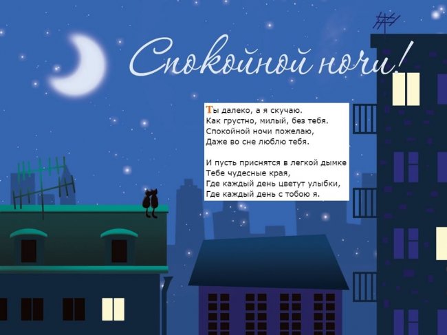Сообщения по интернет с короткими пожеланиями спокойной ночи парню, мужчине, мужу на расстоянии