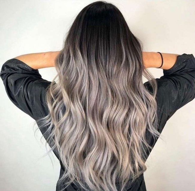 Вариант для смелых. Трендовое окрашивание, создающее эффект седины. Для окрашивания громбре стилисты используют металлические, платиновые оттенки. Лучше всего громбре смотрится в светлых серых оттенках, а вот на темных волосах такое окрашивание редко приживается, так как утяжеляет образ.