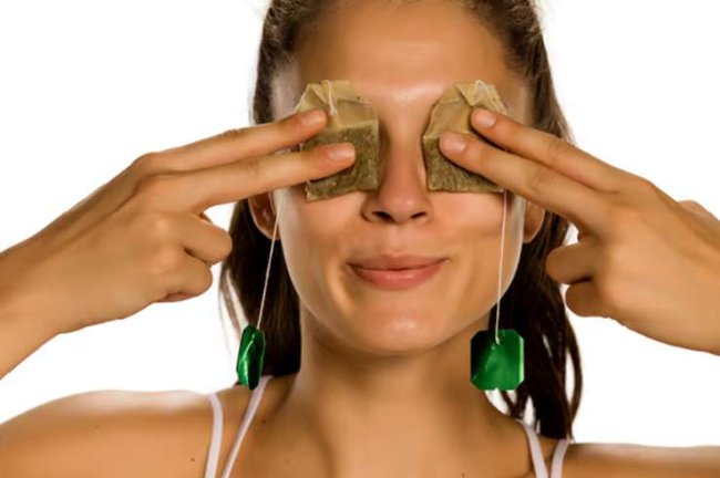 Заварите два чайных пакетика (черный или зеленый чай). Дайте им остыть в холодильнике в течение 20 минут. Приложите охлажденные пакетики на закрытые глаза на 15—20 минут, затем смойте остатки чая прохладной водой.