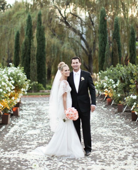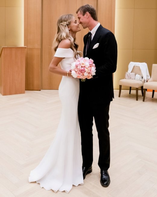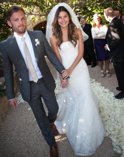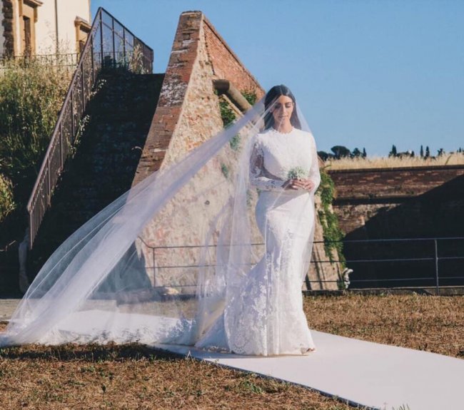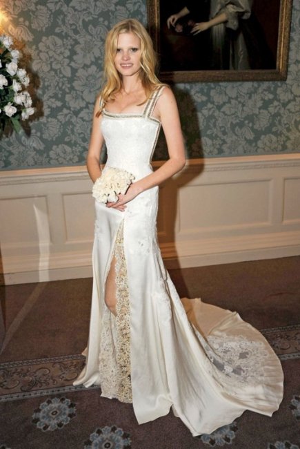 Джастин и Хейли БиберыСилуэтные свадебные платья особенно эффектно смотрятся на стройных невестах с тонкой талией и широкими бедрами. Они могут быть как с длинным рукавом, так и с открытой линией плеч или смелым вырезом на спине. Хейли Бибер в качестве главного свадебного платья выбрала романтичную кружевную модель с длинным ажурным шлейфом, разработанную для нее дизайнером Вирджилом Абло. Ким Кардашьян доверила свой свадебный образ в руки Риккардо Тиши, а Ева Лонгория обратилась за минималистичным белым платьем к Виктории Бекхэм. Vogue.ua собрал самые красивые силуэтные свадебные платья знаменитостей.