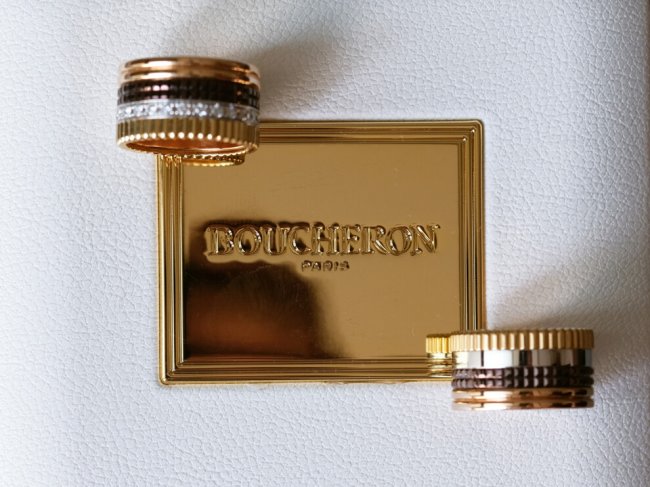 Свадьба Александра Зинченко и Влады СеданОба образа невесты дополнили босоножки Jimmy Choo: к свадебному платью Galia Lahav Влада выбрала элегантную пару обуви с жемчужинами, а к образу Berta Bridal Couture – изящные босоножки с глиттером. Букет невесты был выполнен в монохромной белой цветовой гамме из белых пионов. Если в качестве помолвочного кольца Зинченко подарил своей невесте украшение с крупным желтым бриллиантом огранки "кушон" Tiffany & Co, то свой союз звездная пара скрепила обручальными кольцами Quatre Classique –знаковой моделью ювелирного Дома Boucheron. Руку Влады украсило кольцо, состоящее из желтого, белого и розового золота с коричневым PVD-покрытием и россыпью бриллиантов круглой огранки, а Александр выбрал классическую модель с графическим тиснением без бриллиантовой дорожки.