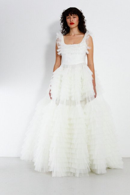 Несмотря на нестабильную ситуацию во всем всем мире в связи с пандемией, британский бренд Molly Goddard осуществил свою давнюю мечту и запустил первую коллекцию свадебных платьев. Теперь дизайнер Молли Годдард, известная как королева тюля на лондонской Неделе моды, представила 12 изысканных свадебных платьев, вдохновленных культовыми силуэтами бренда. В коллекцию вошли образы в оттенках слоновой кости, кремового и белого цветов, созданные специально для современных невест, уставших от классических свадебных платьев.