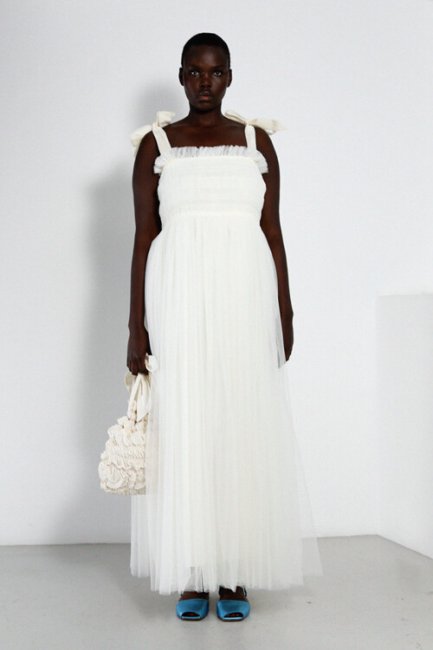 Molly Goddard Bridal"Создать свадебное платье – сложное дело", – говорит дизайнер. В основу своей коллекции Молли Годдард положила идею создания доступных и персонализированных свадебных платьев. Все платья из подвенечной коллекции изготавливаются на заказ в соответствии с британской размерной сеткой. Каждое из творений дизайнера – от пенистого платья Simona, созданного для шумных танцев, до платья-рубашки Aidah с роскошными рюшами и оборками снизу, – можно изменить по крою, цвету и материалу и адаптировать под себя, придав ему оттенок индивидуальности.
