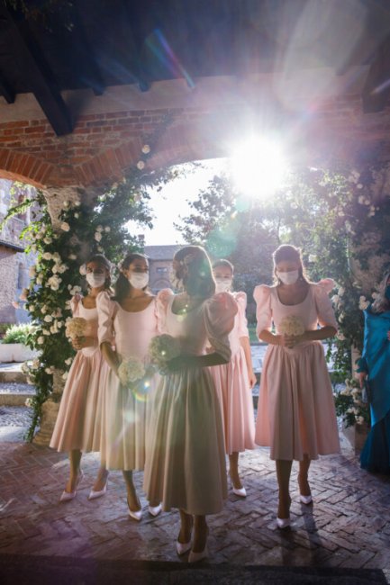 Свадебный образ Федерики ФумагаллиПозже невеста переоделась в элегантное платье без бретелей Alessandra Rich. Лаконичное силуэтное платье с высоким разрезом у бедра было украшено рюшами из органзы и пуговицами с кристаллами. Подружки невесты в этот день были также в нарядах Alessandra Rich из коллекции весна-лето 2020. Больше фото со свадьбы Луиджи Берлускони и Федерики Фумагалли смотрите в нашей галерее.